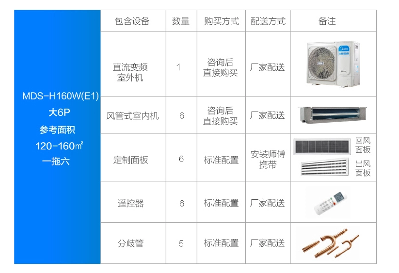 美的 一拖六變頻一級能效 多聯(lián)風(fēng)管機大6匹 家用中央空調(diào) MDS-H160W(E1)