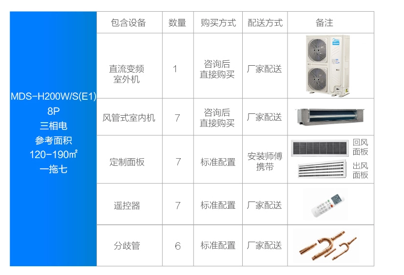 美的 一拖七變頻一級能效 多聯(lián)風管機 8匹 家用中央空調 MDS-H200W/S(E1)